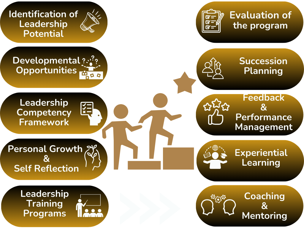 Work with us to prepare your next generation of Leaders. Leadership development is a purposeful and systematic process that aims to enhance the skills, knowledge, and abilities of individuals to become effective leaders within an organization. It involves a deliberate approach to developing leadership competencies, fostering personal growth, and preparing individuals for increased responsibilities and challenges. We offer Leadership development programs which include a combination of formal training, mentoring, coaching, and experiential learning opportunities. These programs provide individuals with the knowledge and tools necessary to lead others, make effective decisions, communicate clearly, and adapt to changing circumstances. Personal growth is an essential component of leadership development. It involves self-reflection, self-awareness, and the cultivation of emotional intelligence.
